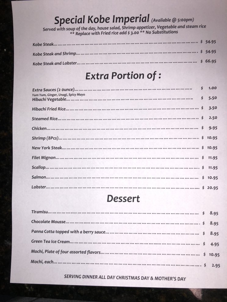 Introducing the Menu at Kobe Seafood & Steakhouse